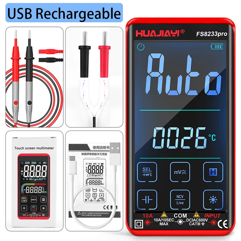 Цифровой профессиональный мультиметр HUAJIAYI FS8233 pro с сенсорным экраном тестер Aneng 621a