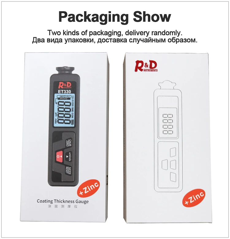 Толщина краски R&D ET330+Zn портативный цифровой измеритель толщины покрытия краски от 0-1500 мкм Fe/NFe/Fe+Zn