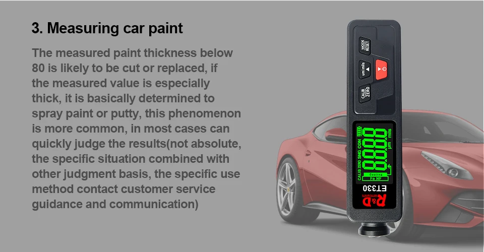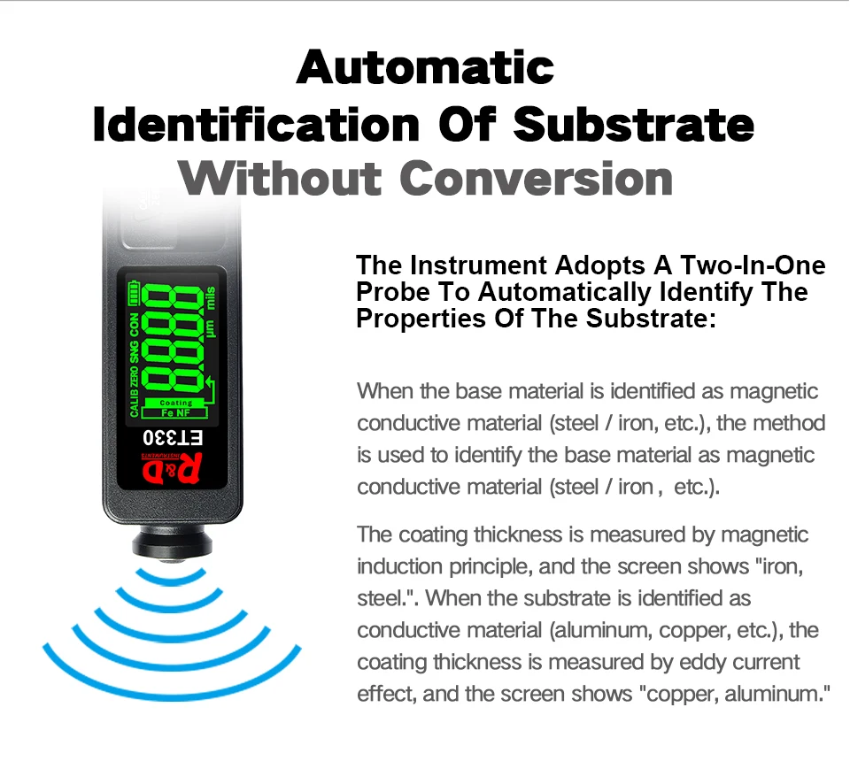 Толщинамер R&D ET330+Zn портативный цифровой измеритель толщины покрытия краски является неотъемлемым инструментом для измерения толщины металлических и других покрытий, таких как краска или эмаль на стали, а также покрытия на алюминии или меди, включая краску и анодированный покрытия. Они имеют автоматическую функцию определения свойств основания. Эти приборы предназначены для измерения толщины покрытий и красок. Они являются неотъемлемым оборудованием для обработки поверхности материалов и широко используются как в промышленности, так и в быту, для приобретения авто.