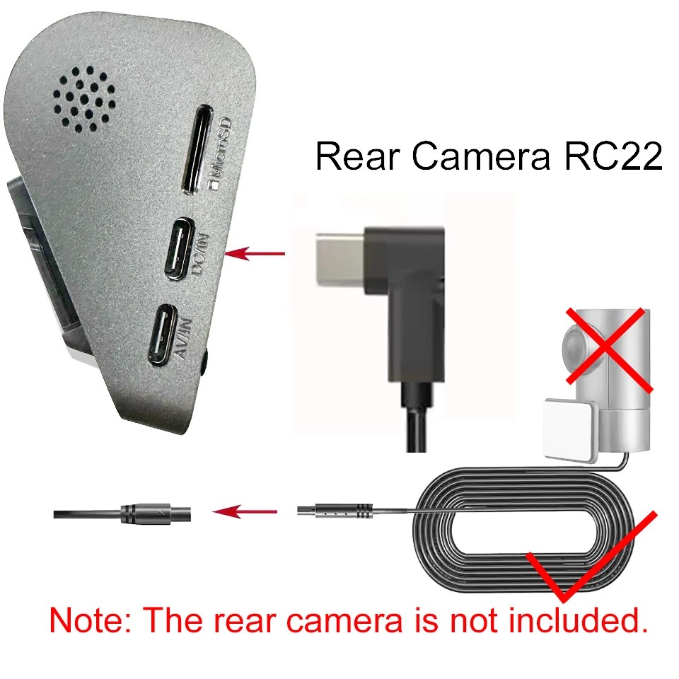 Оригинальный кабель задней камеры для видеорегистратора 70mai A810S A800SE T800 T800E A410 с штекером Type-C для RC21 RC22 RC24