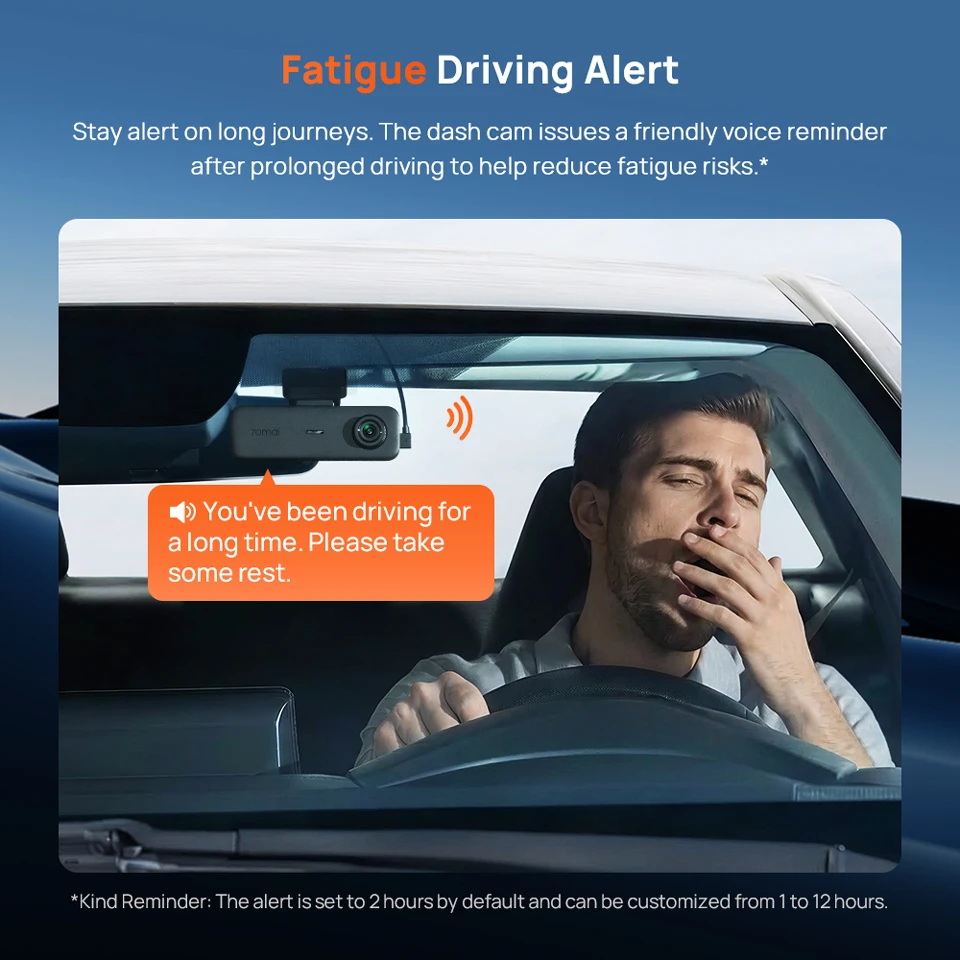 Будьте внимательны во время длительных поездок. Видеорегистратор выдает дружеское голосовое напоминание после длительного вождения, чтобы уменьшить риск усталости.*