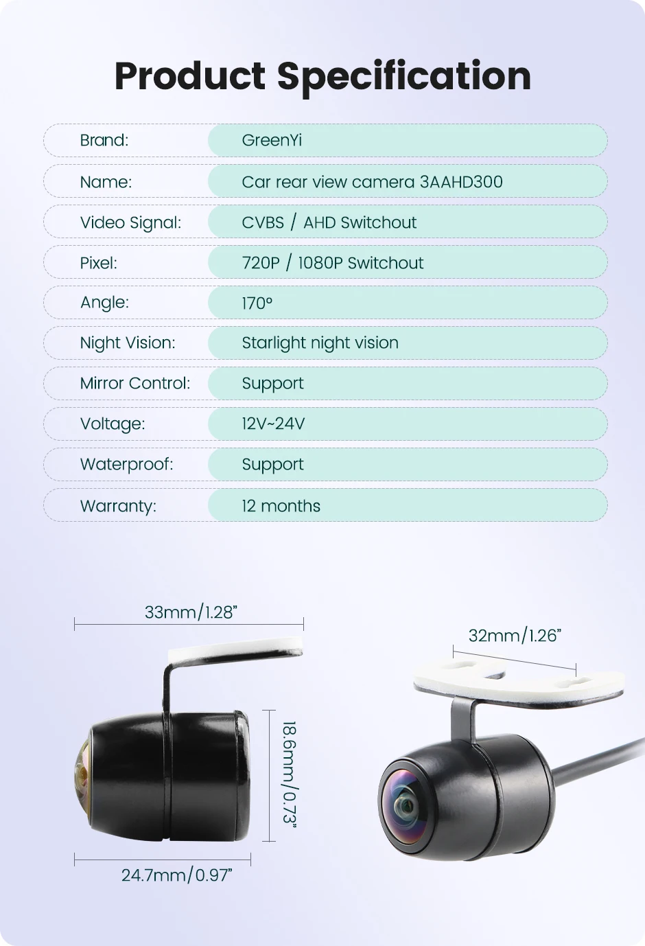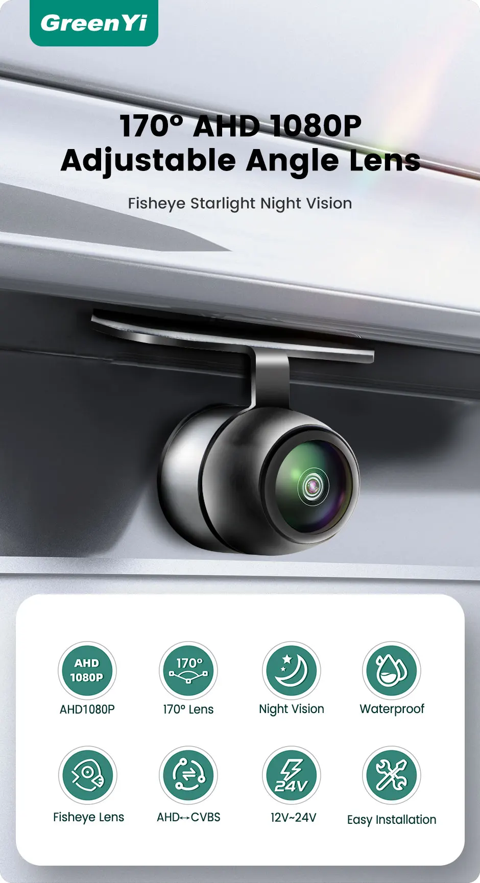 Универсальная задняя и передняя камера GreenYi AHD 3AC301 бабочка два режима CVBS+AHD 1080P 1920x1080 угол 170 градусов рыбий глаз