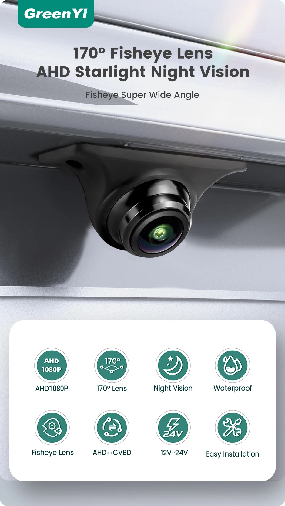 Автомобильная камера заднего/переднего вида GreenYi AHD 3AC879 — это универсальное решение для безопасной парковки и полного контроля обстановки вокруг авто. Камера обеспечивает четкое изображение в формате Full HD 1080P и имеет широкий угол обзора 170°, что позволяет минимизировать «слипые зоны».