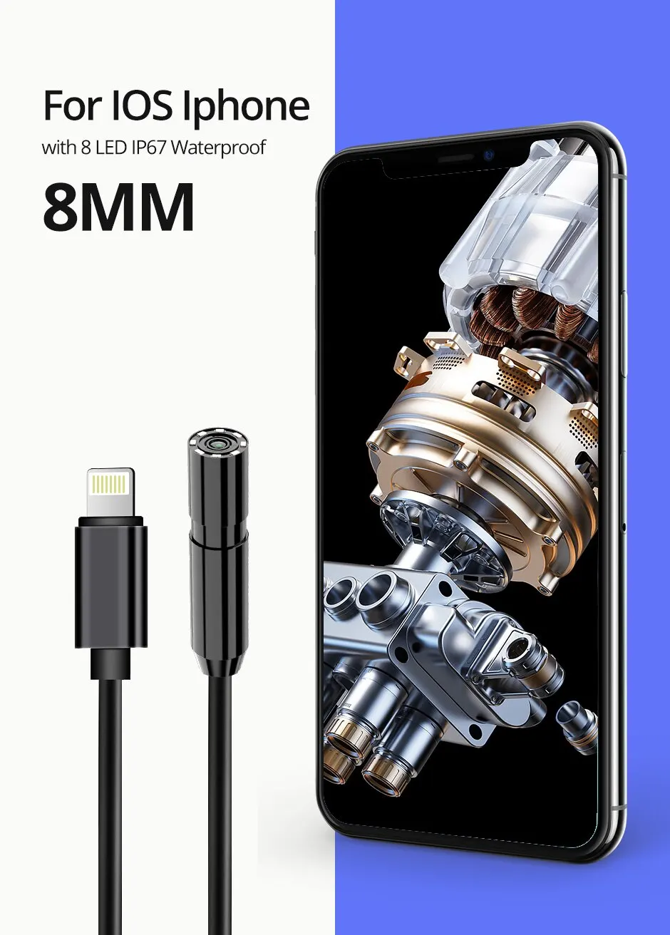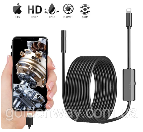 Ендоскоп Бороскоп для айфона Iphone IOS Lightning 8 мм HD 720p довжина 3м IP67 вебкамера роз'єм лайтинг