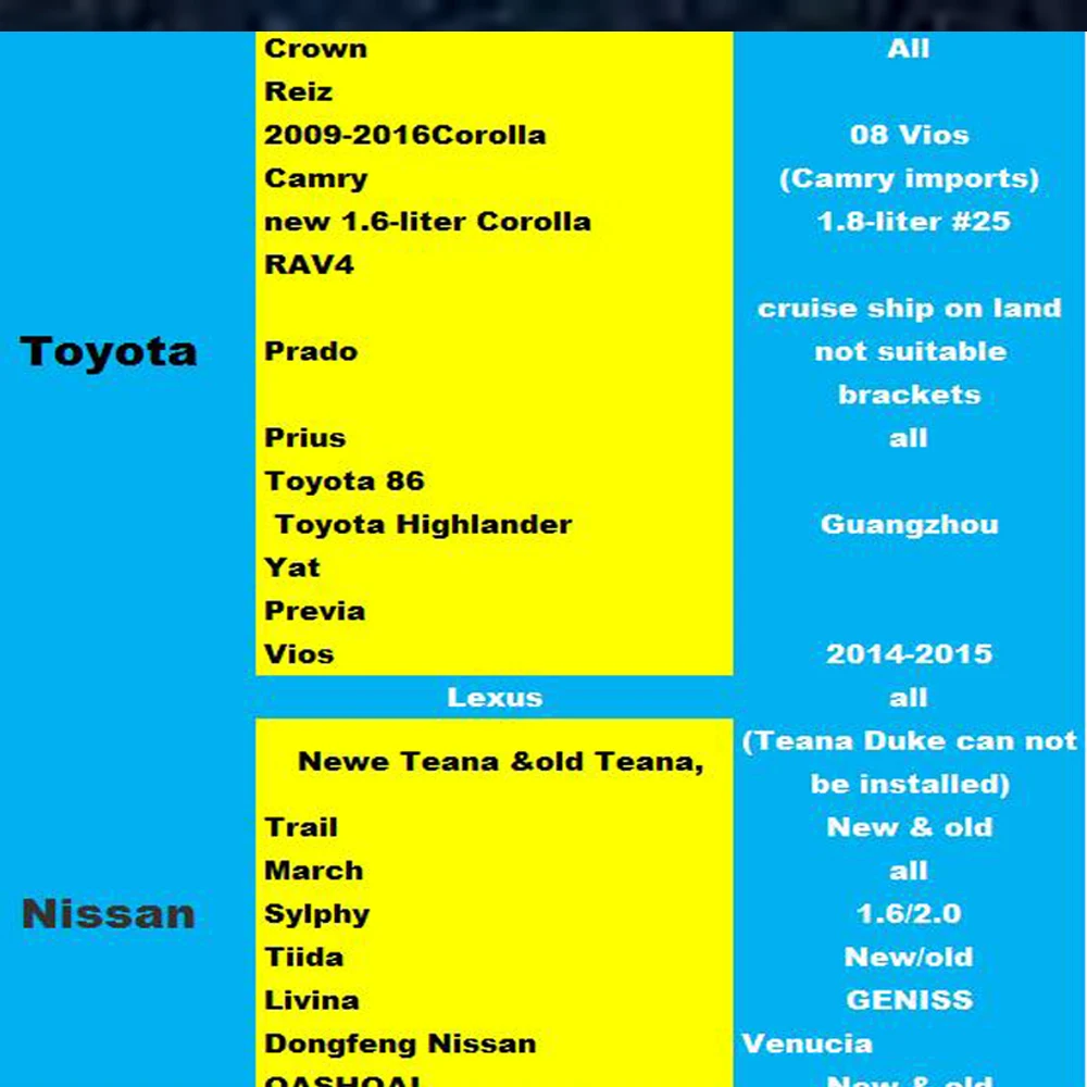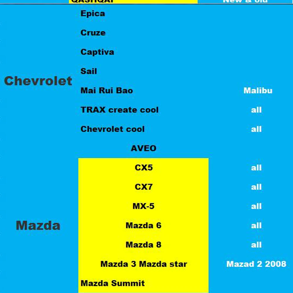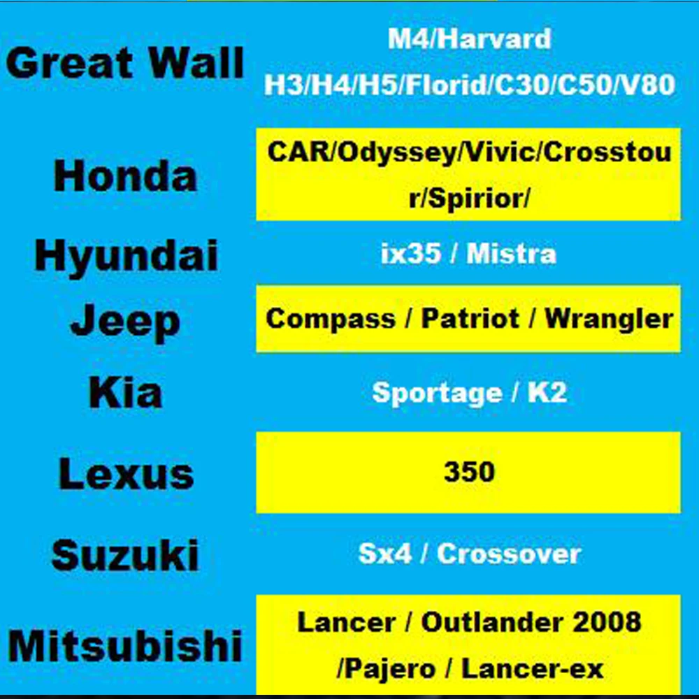 For Partial Kia/Hyundai/Honda/Mazda/Nissan/Mitsubishi/Chevrolet,etc.