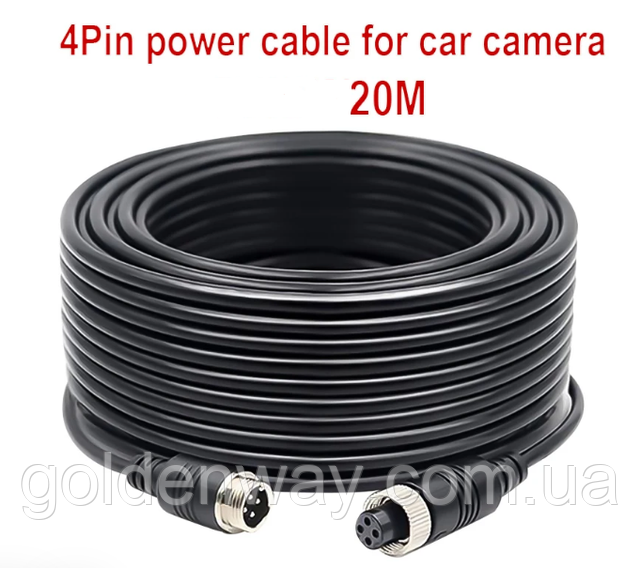 Автомобільний кабель 4 Pin призначений для передачі відео сигналу та для живлення камер заднього виду від автомобільного монітора. Завдяки великій довжині може використовуватися як подовжувальний кабель в автомобілях.Нікельовані наконечники забезпечують надійне та міцне з'єднання. Довжина кабелю 20 метрів, роз'єми 4PIN Aviator мають герметичне різьбове кріплення, яке надійно захищає внутрішню частину кабелю від зовнішнього впливу та попадання води, пилу та інших сторонніх предметів у роз'єм.