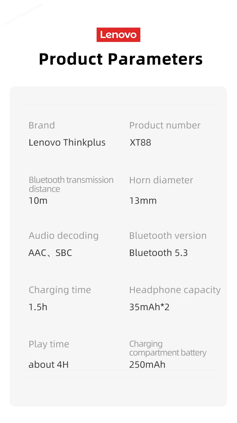 1. Bluetooth V5.3 -- Lenovo XT88 has superior sound quality and strong signal so that there is no disconnection in listening to music or making phone calls within 10 meters.