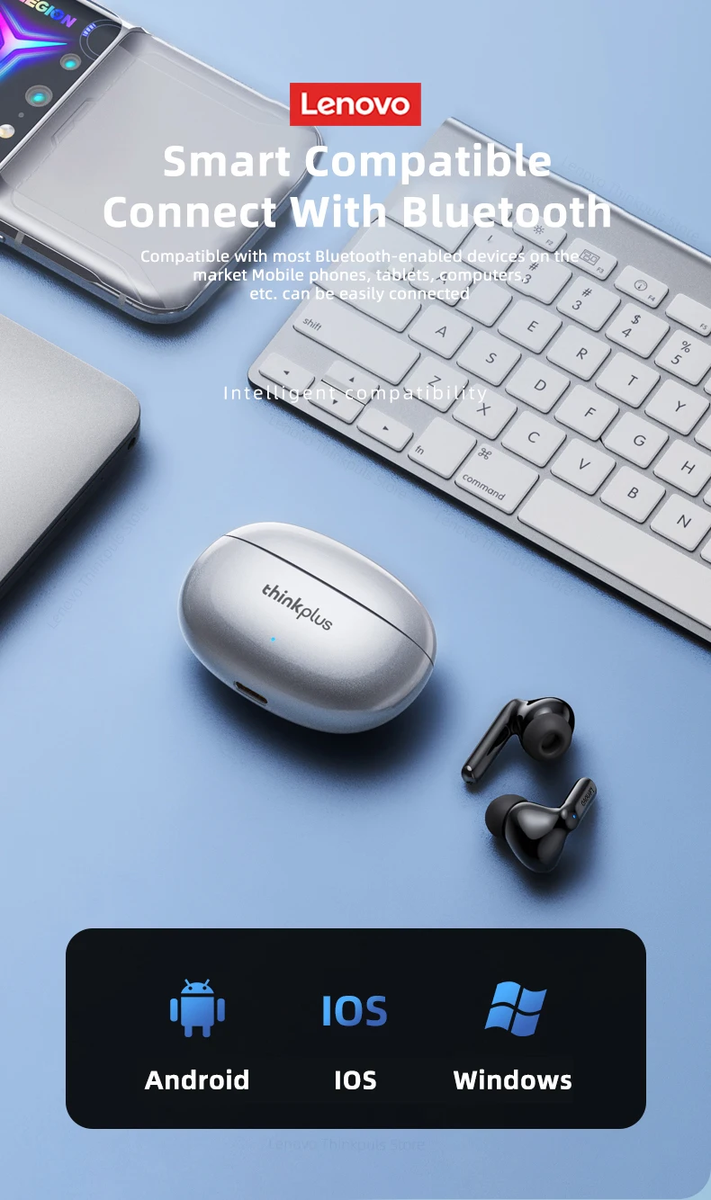Бездротові навушники Lenovo XT88 легко підключаються та повністю сумісні з усіма смартфонами, планшетами та ноутбуками на iOs, Android та Windows платформах.