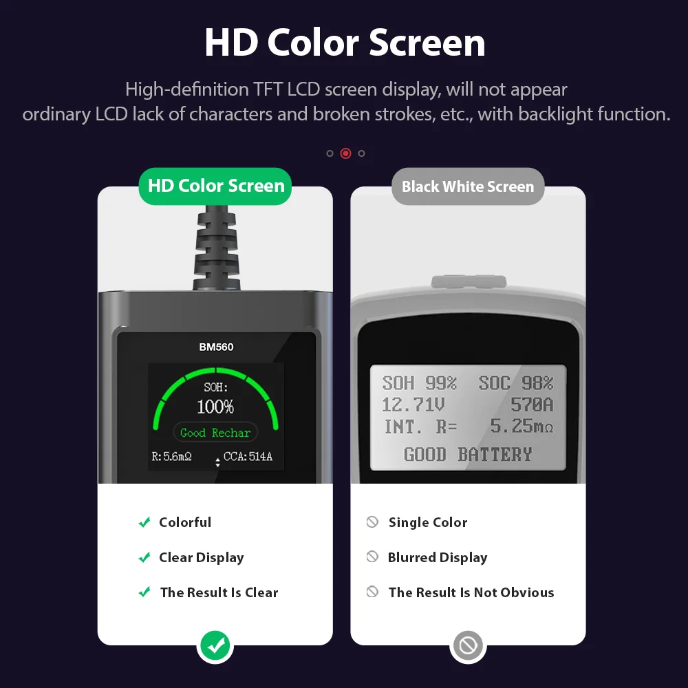 1. Тестер батареї BM560 з екраном HD 1,8 дюйма. BM580 Тестер батареї з 2,4-дюймовим екраном HD