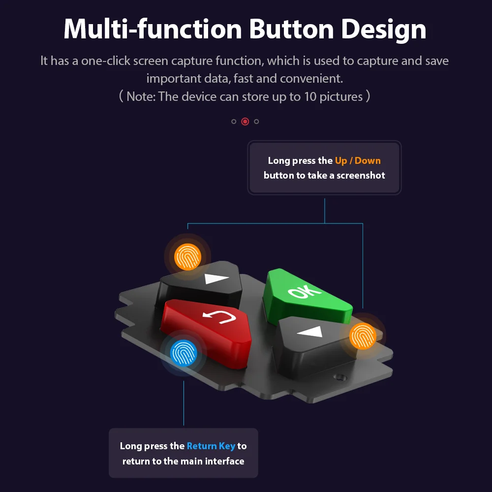 Натисніть і утримуйте кнопки «Вгору» та «Вниз», щоб зберегти до 10 зображень, які використовуються для швидкого та простого збирання та збереження важливих даних.