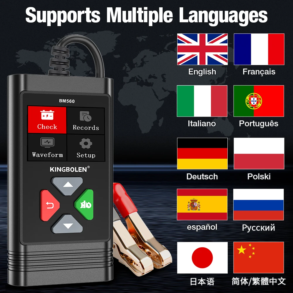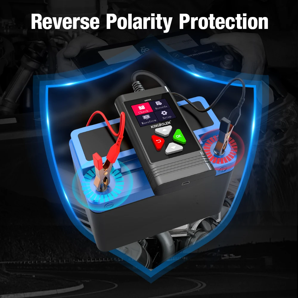 Тестер батареї KINGBOLEN BM560 має надзвичайно низьку потужність і не розряджає батарею. Завдяки роботі за допомогою меню, він досить простий у використанні. А високоякісні мідні затискачі мають захист від неправильної полярності та іскронепроникність у випадку випадкового підключення кабелів для стабільного та безпечного з’єднання в процесі тестування.