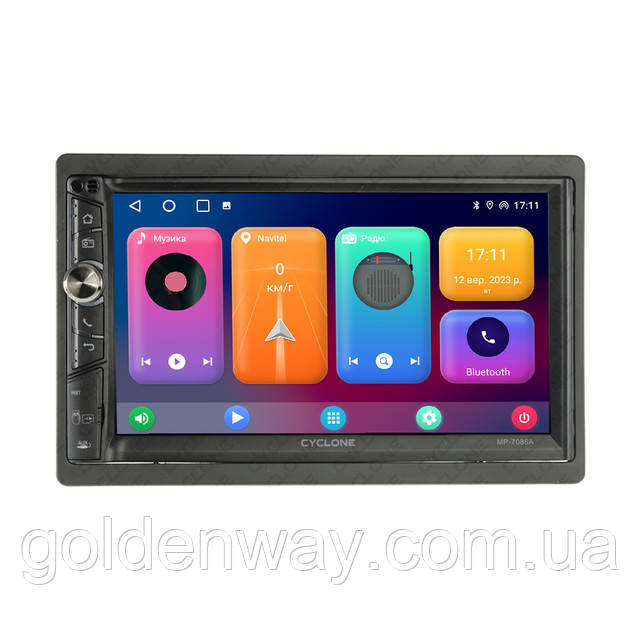 Автомагнітола магнітола 2 DIN Cyclone MP-7086A V3 Android 10 пам'ять 2/32 Гб WiFi GPS Bluetooth CarPlay AndroidAuto