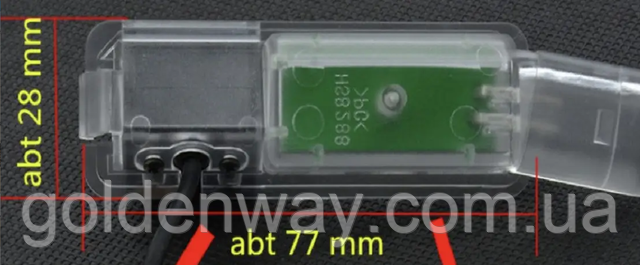 Кріплення призначене для встановлення відеокамери заднього огляду в автомобіль замість рідного плафона підсвічування номерного знака. Виготовлене як оригінальний плафон підсвічування номерного знака, у який інтегрується відеокамера заднього огляду. Виріб є простим і практичним рішенням для заміни штатного плафона підсвічування номера на кріплення камери. Матеріал, з якого виготовлене кріплення, а також його корпус ідентичні заводським компонентам від автовиробника. Модель використовує оригінальну лампу підсвічування, водночас кріплення лампи та роз'єм під'єднання повністю відповідають оригінальному плафону освітлення. Під час заміни плафона освітлення продовжує працювати у звичайному режимі.