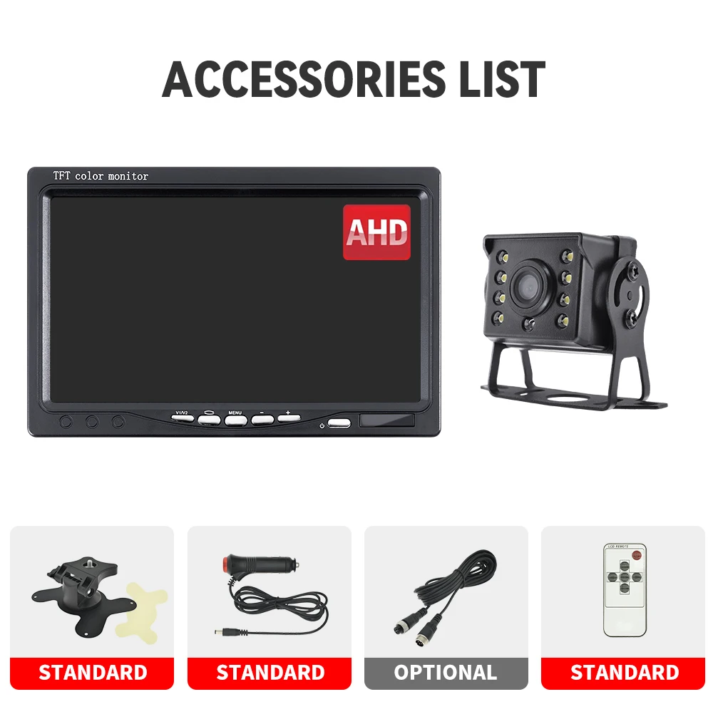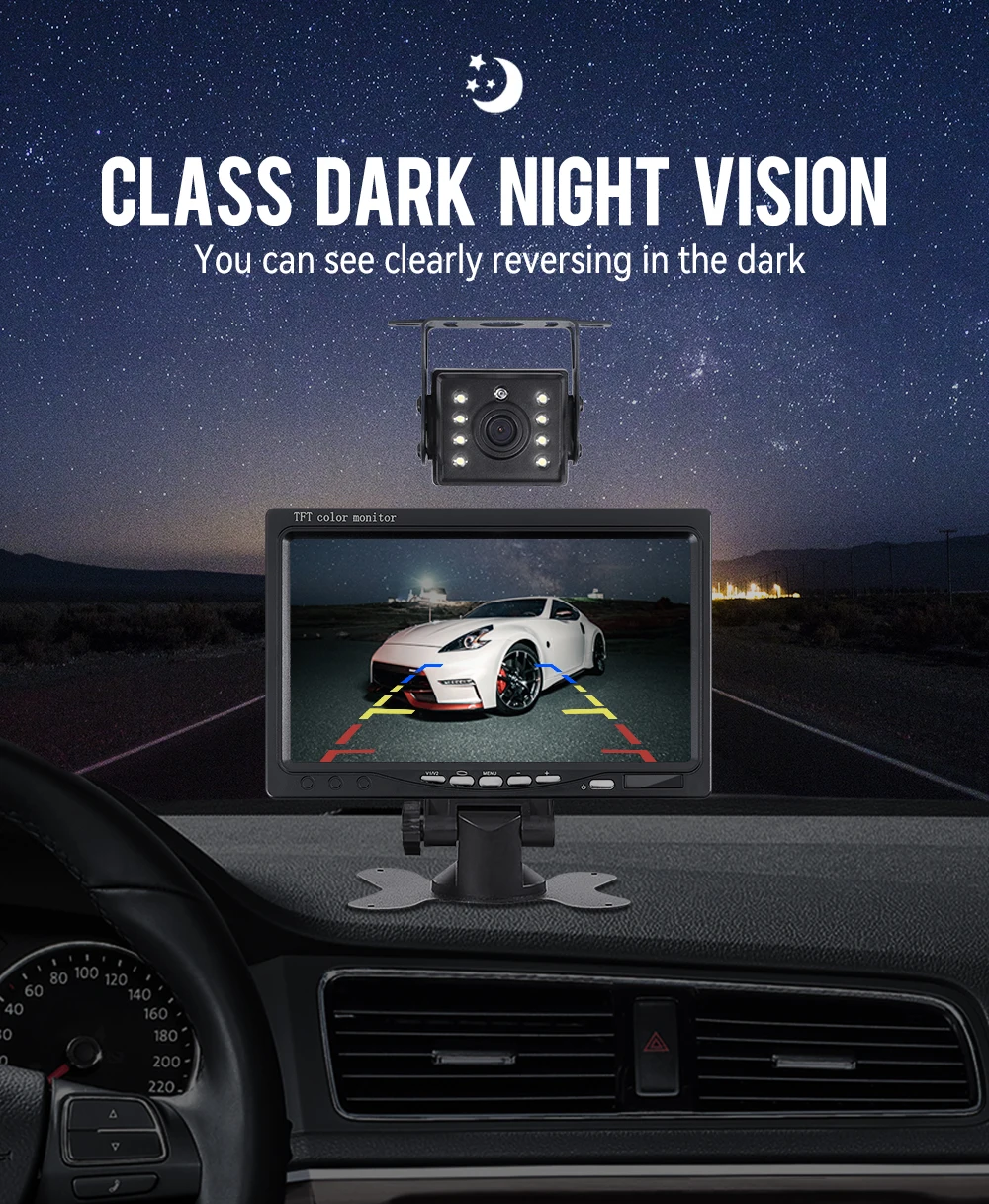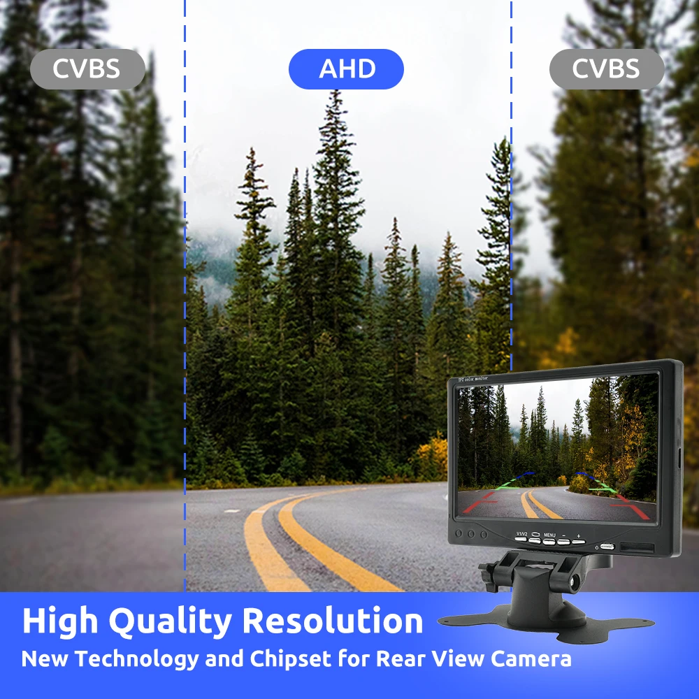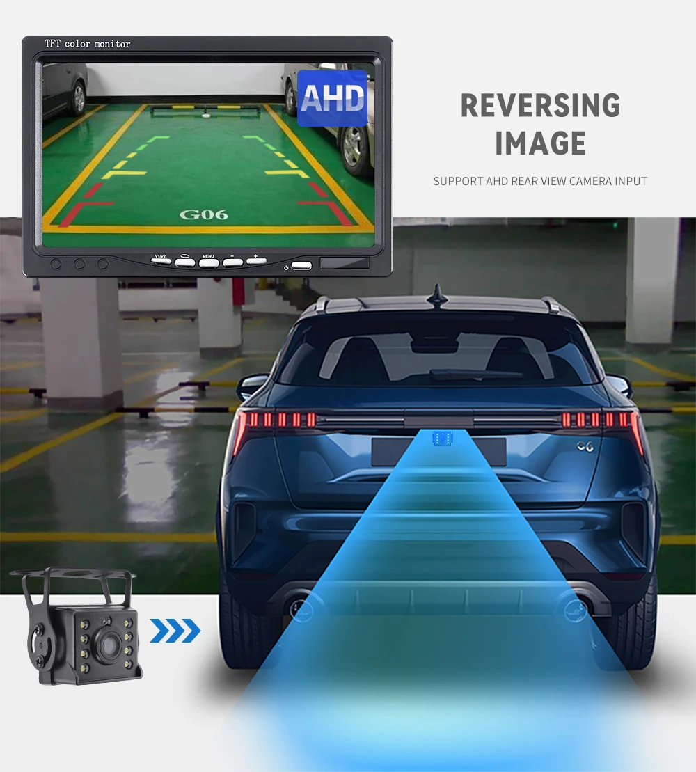 Комплект обладнаний яскравим екраном 7 дюймів, та камерою. Дуже простий у встановленні та не вимагає використання додаткових знань. Меню мультинаціональне й інтуїтивно зрозуміле навіть недосвідченим користувачам. Вся система універсальна та підійде для всіх різновидів транспорту, зокрема і спецтехніці.