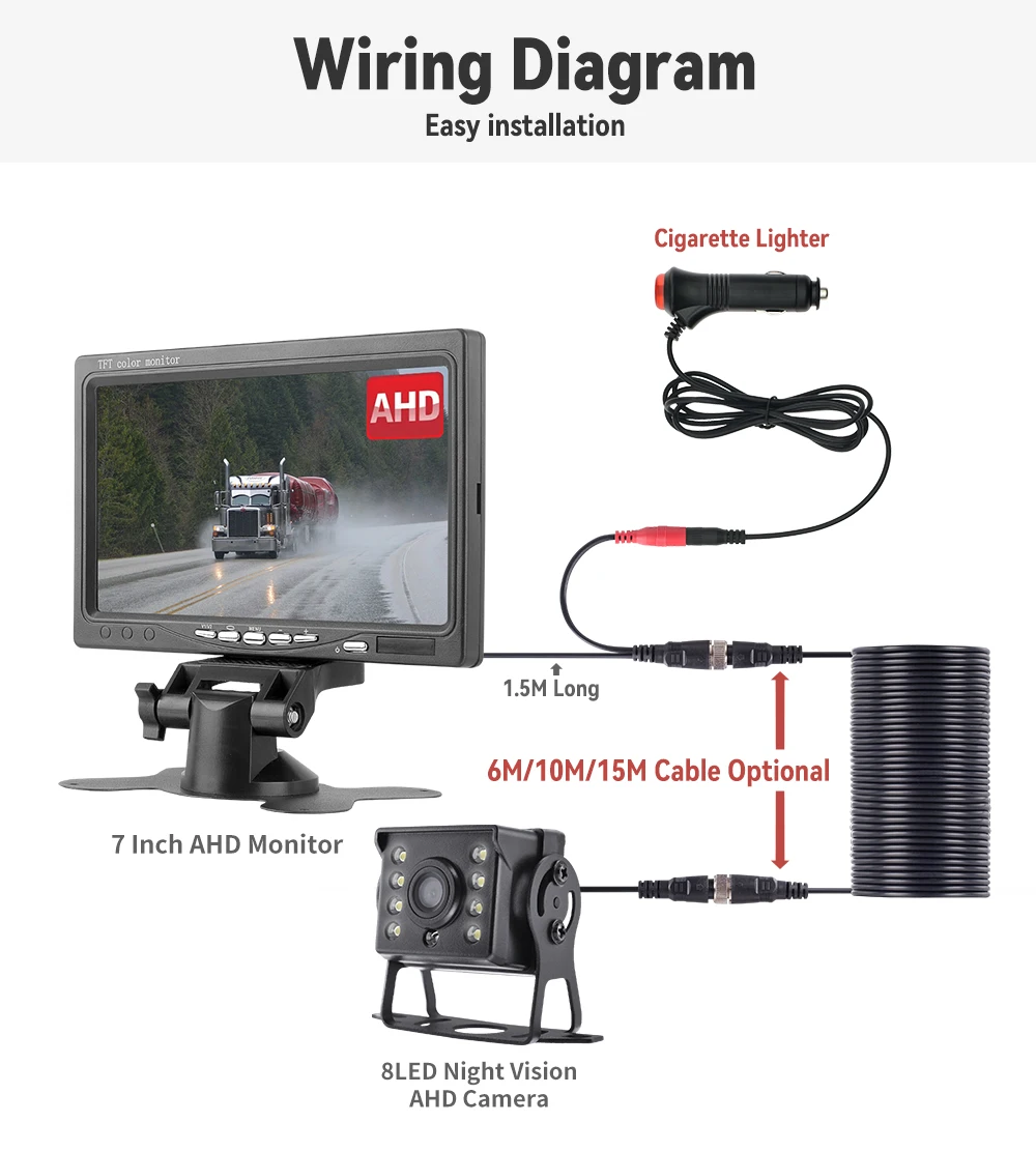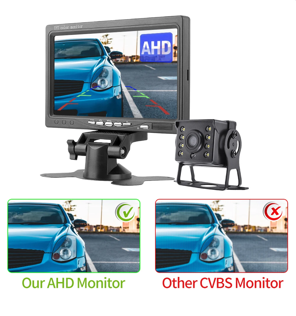 Система паркування для вантажівки комбайна трактора IPS Монітор AHD 7 дюймів+Камера 8LED+кабель 15 метрів 12-24 В