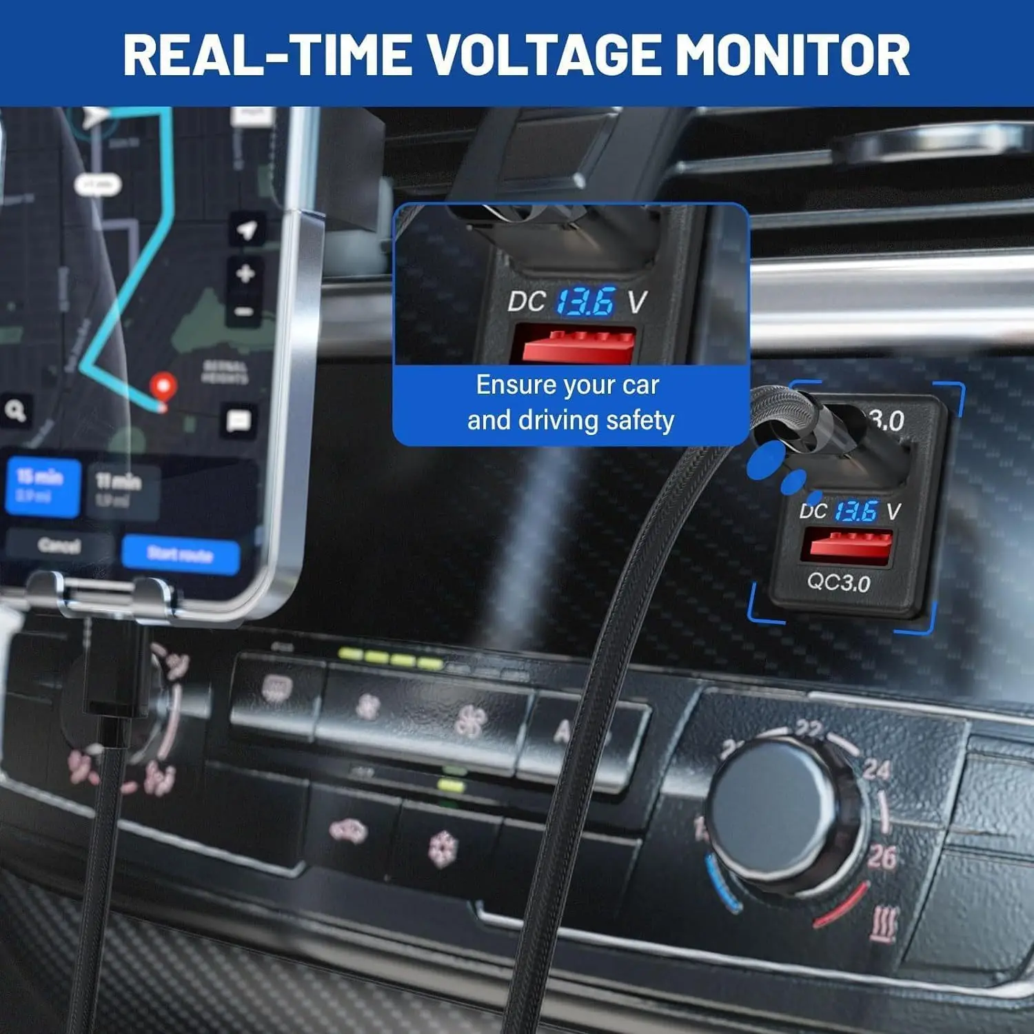 - Вольтметр - Вбудований світлодіодний вольтметр може відображати стан акумулятора автомобіля на екрані. Світлодіодний індикатор зі світною цифрою для перевірки даних вночі або в темряві. ПРИМІТКА: Цифровий світлодіодний дисплей працює лише тоді, коли ви підключаєте його до акумулятора
