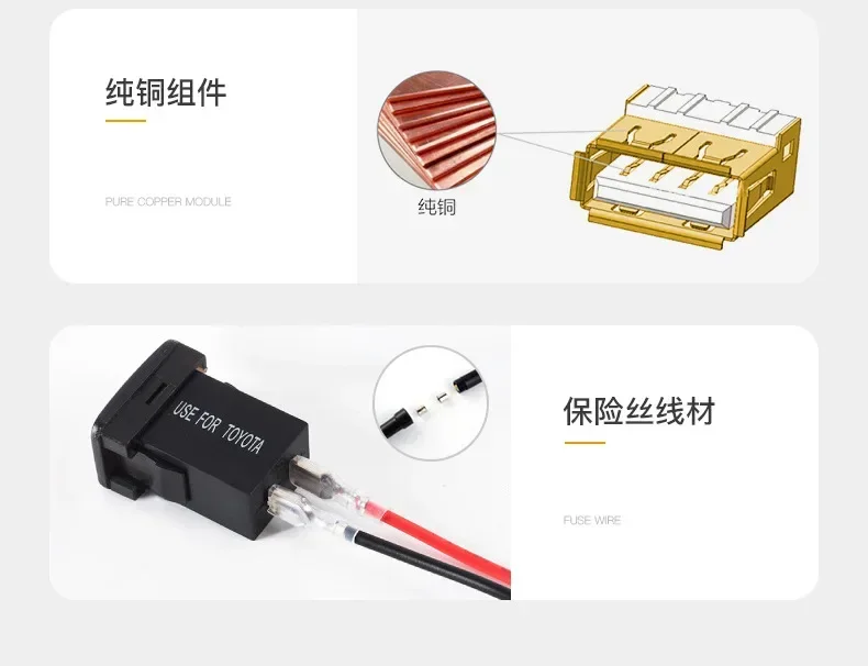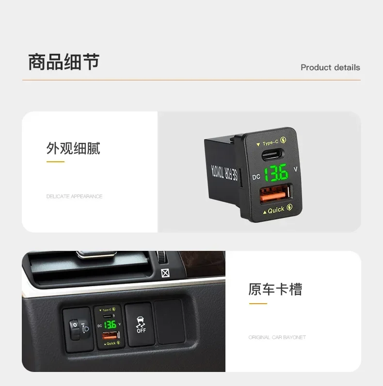 Продукт виготовлено відповідно до вимог виробника оригінального обладнання. Доступний у вашому автомобілі або вантажівці, чудово працює як заміна або додатковий зарядний пристрій з подвійним USB-портом у TOYOTA. Але він не сумісний з усіма автомобілями TOYOTA. Будь ласка, перевірте розмір товару та слот вашого автомобіля, щоб переконатися, що він підходить, перш ніж робити замовлення.