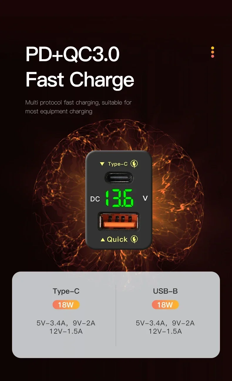 - Порт швидкої зарядки USB Quick Charge 3.0 - Інтелектуальна зарядка, вбудована мікросхема для інтелектуальної зарядки, автоматично розпізнає ваші пристрої та заряджає їх з оптимальною швидкістю, що забезпечує кращу продуктивність зарядки; QC 3.0 Зворотна сумісність з QC 2.0, 1.0, забезпечує стандартну зарядку для пристроїв без підтримки швидкої зарядки.