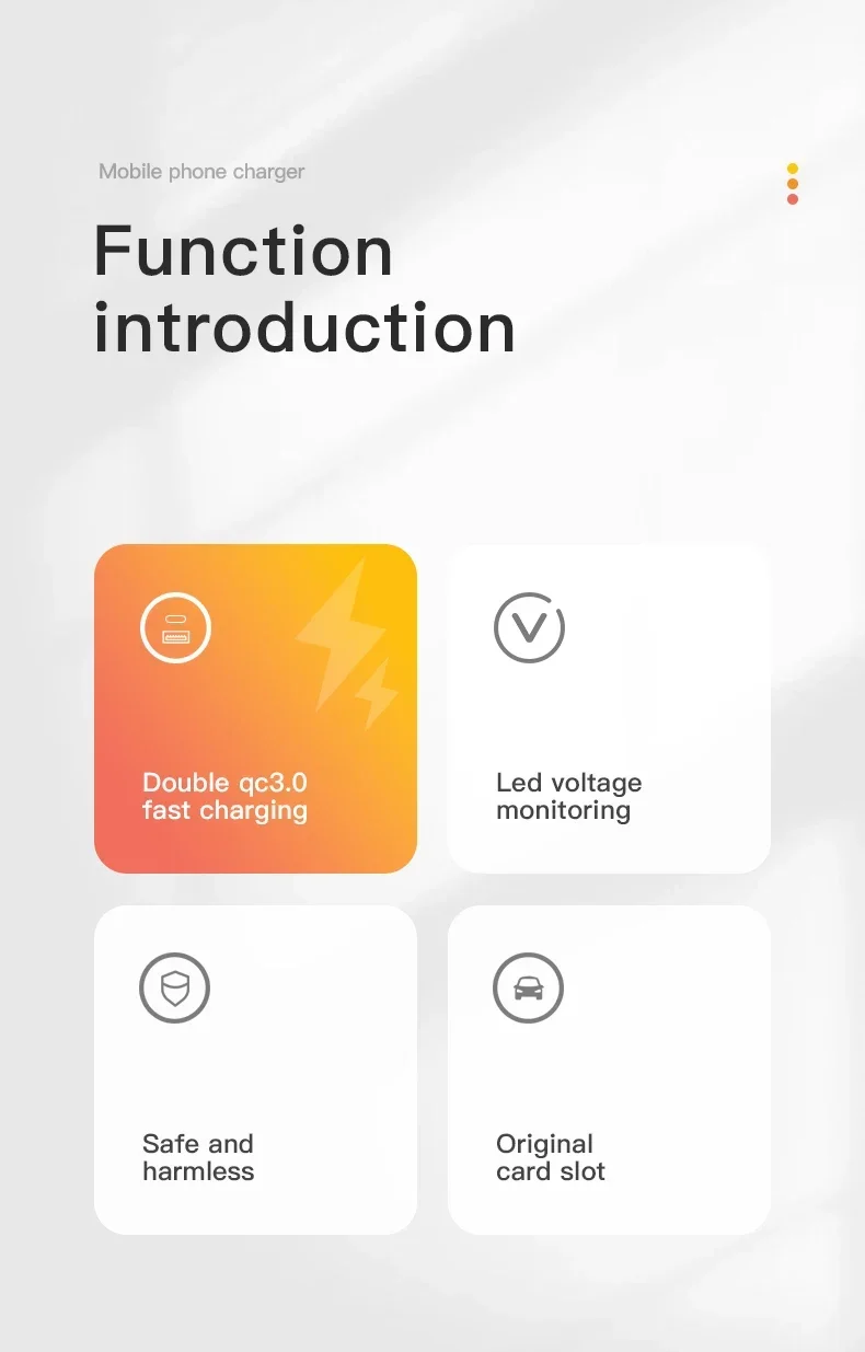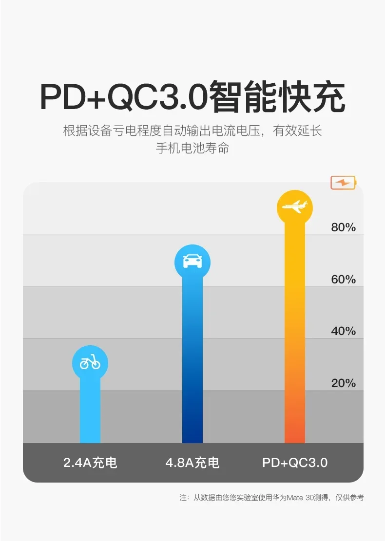 Швидке заряджання — використовує технологію Qualcomm Quick 3.0 з вбудованою інтелектуальною системою. Два порту, максимальна потужність становить 48Вт, що дає змогу одночасно заряджати два портативні пристрої, заряджання відбувається швидше й більше.