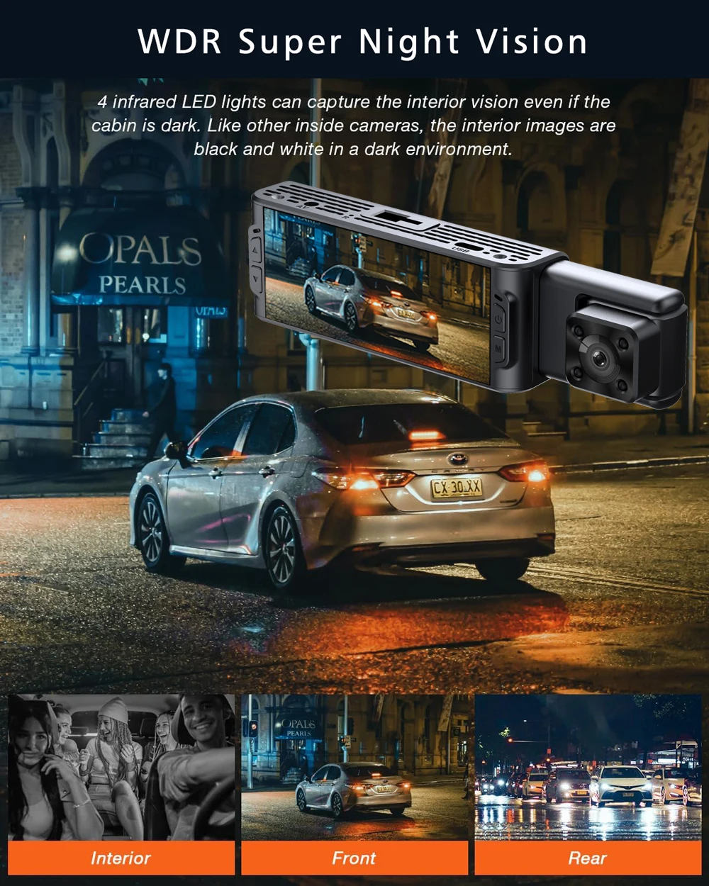 Автомобільний відеореєстратор Blackbox на 3 камери має салонну камеру і виносну задню камеру.