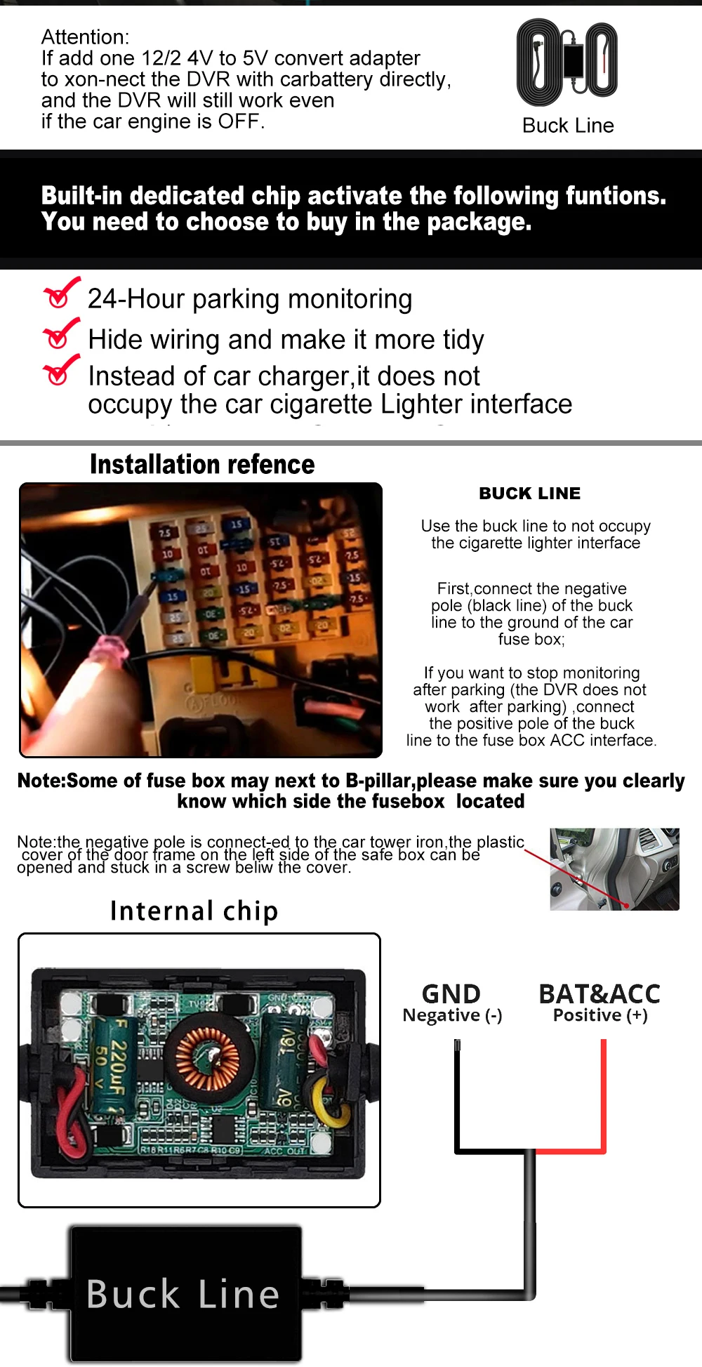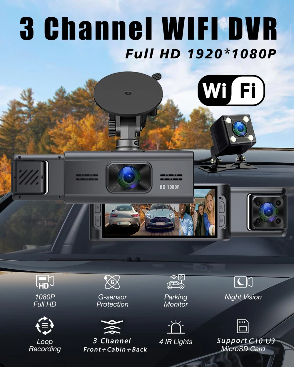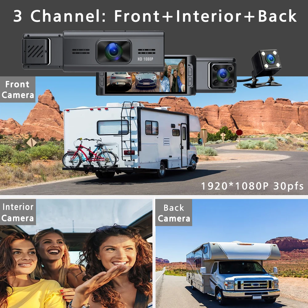 Запис звуку відбувається синхронно з записом відео. Відеореєстратор може живитися як від автомобільного прикурювача, так і від вбудованої акумуляторної батареї. Таким чином, реєстратор c трьома камерами завдяки своїм характеристикам є відмінним варіантом для кожного автовласника.