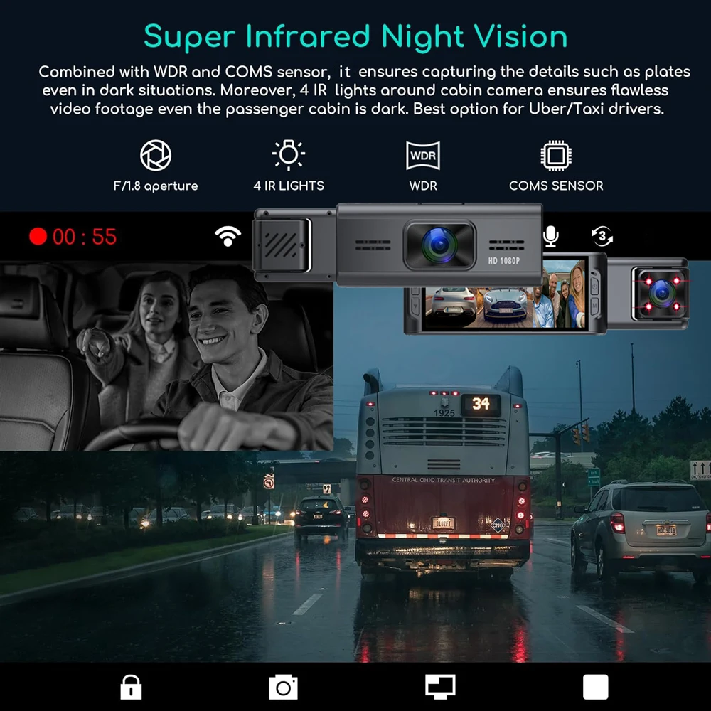 Автомобільний відеореєстратор Blackbox X86 B9W з WIFI на 3 камери запис салону для таксі та автобусів і парковка